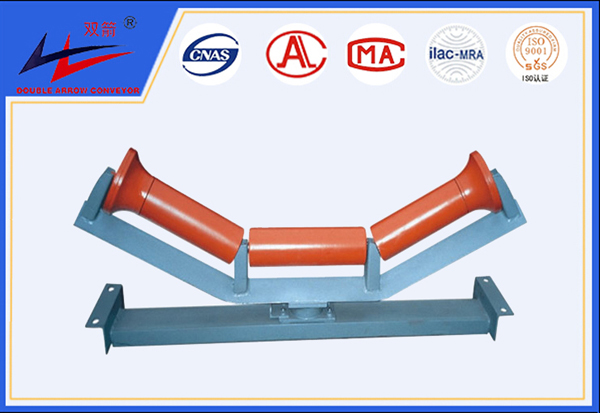托輥的作用是支撐輸送帶和物料重量。托輥運轉須靈活可靠。減少輸送帶同托輥的摩擦力,對占輸送機總成本25%以上的輸送帶的壽命起著關鍵作用。雖然托輥在帶式輸送機中是一個較小部件,結構并不復雜,但制造出高質量的托輥并非易事。如果輸送皮帶跑偏時,相對重心向哪偏哪邊的摩擦力就會加大,在摩擦力的作用下,摩擦力大的一端就會向輸送帶運行方向產生擺動,這種自動擺動的功能將皮帶調回到中間的運行路線上。